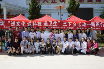 2016年5月11日由我岗2位岗员及我院3位其他志愿者组成的“三下乡”志愿服务队到文成县南田开展一场“送文化,送科技,送卫生”的义诊志愿服务活动。义诊现场人头攒动,我们五位来自不同科室的志愿者搭档式配合,针对群众的不同需求及年龄阶层,积极检查并告知相关诊疗方案,并且免费给群众发放牙膏牙刷,告知正确的刷牙方法,并做常规的口腔卫生宣教。在义诊过程中,我们体会到他们对于优质医疗服务的渴求,而我们这些仅作短暂停留的志愿者,能带给他们的只能是更加耐心地告知他们最该知道的注意事项。
